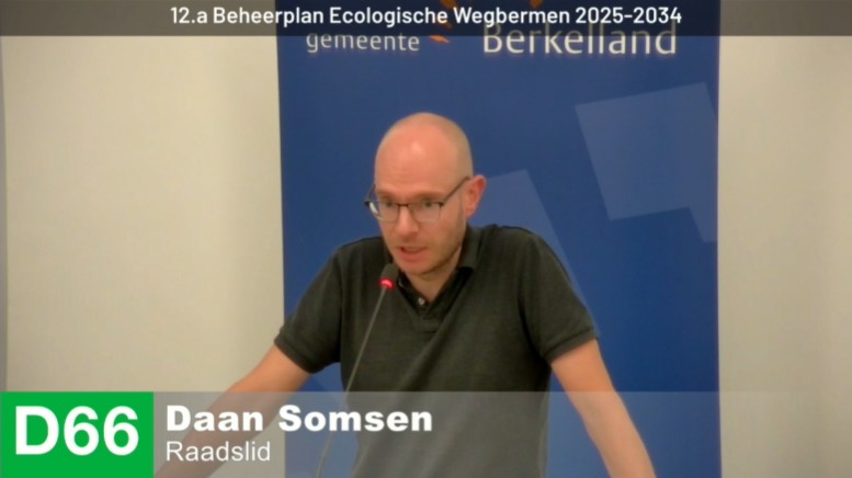 Het beheer van de Berkellandse wegbermen was de weken voor het zomerreces een veelbesproken onderwerp. Meerdere malen zijn schriftelijke vragen ingediend en ook werd dit onderwerp tijdens de beeld- en oordeelsvormende sessies uitgebreid besproken. Afgelopen dinsdag werd het Beheerplan Ecologische Wegbermen 2025 – 2034 ten slotte tijdens de Raadsvergadering bediscussieerd. Met een motie voor meer monitoring, als aanvulling op het beheerplan, kon de fractie van D66 Berkelland uiteindelijk instemmen met dit beheerplan. Raadslid Daan Somsen sprak namens ons zowel zijn waardering als zorgen uit.
